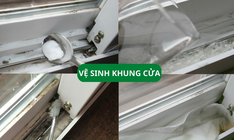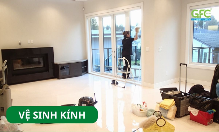 - 1 nhân viên sẽ chà rửa khung cửa và các tấm kính.