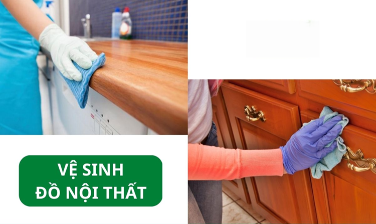 - Lau dọn đồ đạc và các vật dụng trong nhà