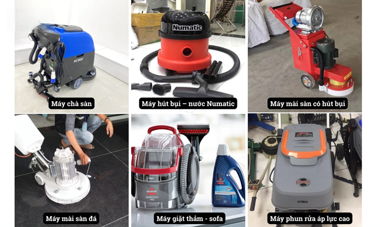 Hóa chất, dụng cụ, máy móc vệ sinh nhà ở sau xây dựng