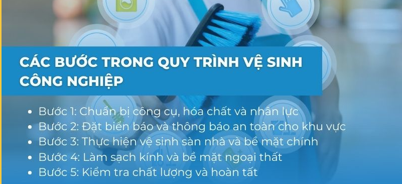 Quy trình vệ sinh công nghiệp chuẩn gồm 5 bước dưới đây: